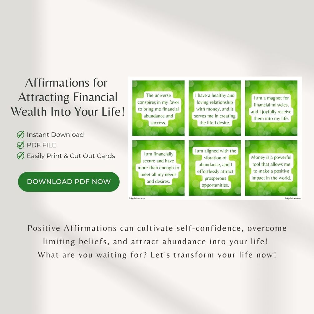 Sample of Financial Abundance PositiveAffirmation Cards included in this collection: