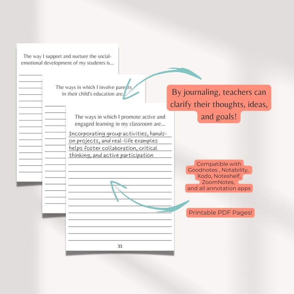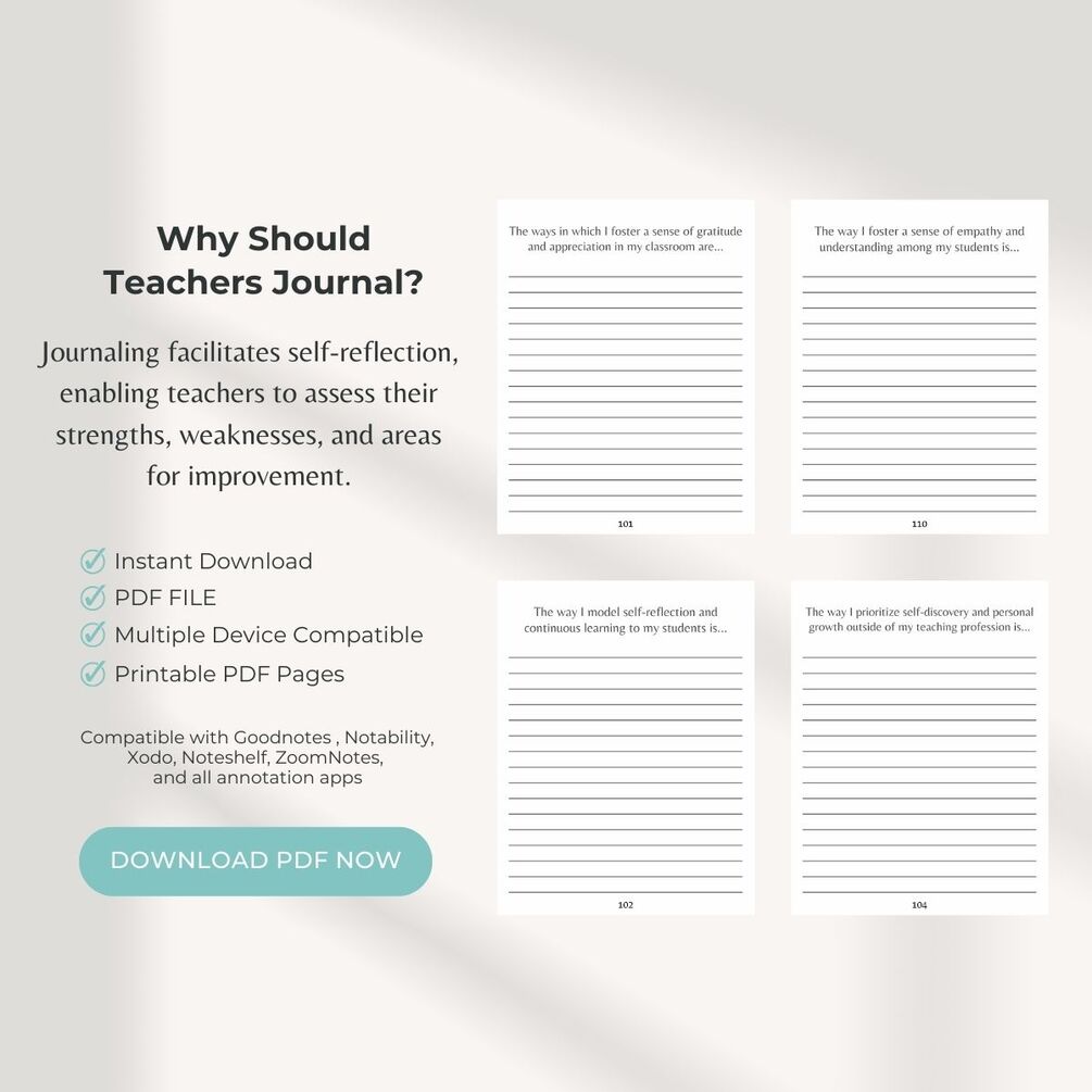 Teacher Journals -Digital Journal with Journal Prompts for Teaching, Teaching Journal, Journal for Teachers, Printable Teacher's Journal - Compatible with Goodnotes , Notability, Xodo, Noteshelf, ZoomNotes and, all annotation apps.